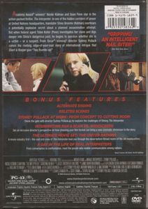 A thriller about an interpreter who has overheard an assassination attempt in the UK. An American Secret Service agent is sent to investigate as Silvia Broome, the interpreter, is in danger of being killed by the assassins. |