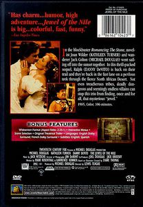 Joan Wilder is thrust back into a world of murder, chases, foreign intrigue... and love. This time out she's duped by a duplicitous Arab dignitary who brings her to the Middle East, ostensibly to write a book about his life. Of course he's up to no good, and Joan is just another pawn in his wicked game. But Jack Colton and his sidekick Ralph show up to help our intrepid heroine save the day. |