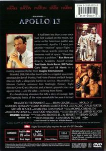 Technical troubles scuttle the Apollo 13 lunar mission in 1971, risking the lives of astronaut Jim Lovell and his crew in director Ron Howard's chronicle of this true-life story, which turns a failed journey into a thrilling saga of heroism. Drifting more than 200,000 miles from Earth, the astronauts work furiously with the ground crew to avert tragedy. |