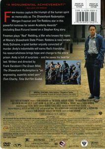 Framed in the 1940s for the double murder of his wife and her lover, upstanding banker Andy Dufresne begins a new life at the Shawshank prison, where he puts his accounting skills to work for an amoral warden. During his long stretch in prison, Dufresne comes to be admired by the other inmates -- including an older prisoner named Red -- for his integrity and unquenchable sense of hope. |